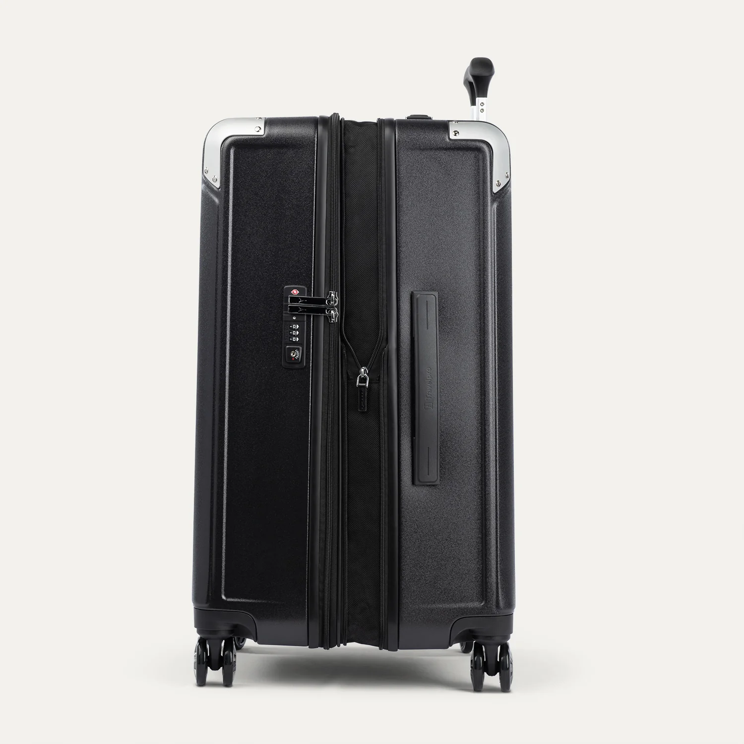 The PrecisionGlide™ System delivers the mobility that defines Platinum® Elite: eight MagnaTrac® self-aligning 360° spinner wheels combined with a four-stop PowerScope Lite handle and comfortable Contour Grip, for steering control that doesn't degrade as the bag gets heavier. The 5 cm zippered expansion adds capacity on the return leg without compromising rolling stability.